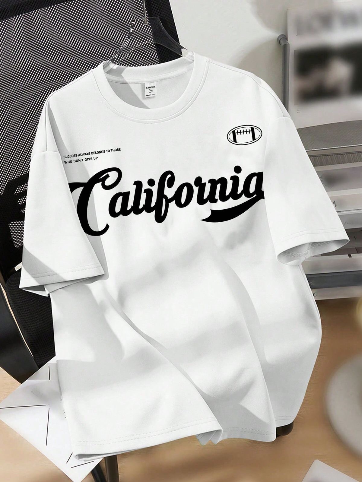 Fresh, clean, and full of West Coast energy — the California Script Tee brings laid-back vibes with a sporty edge. Featuring a bold “California” cursive print, a minimalist football graphic, and an inspiring quote: *”Success always belongs to those who don’t give up.”* This tee pairs effortlessly with jeans, shorts, or joggers for an easy streetwear look. Perfect for dreamers, doers, and everyone in between.